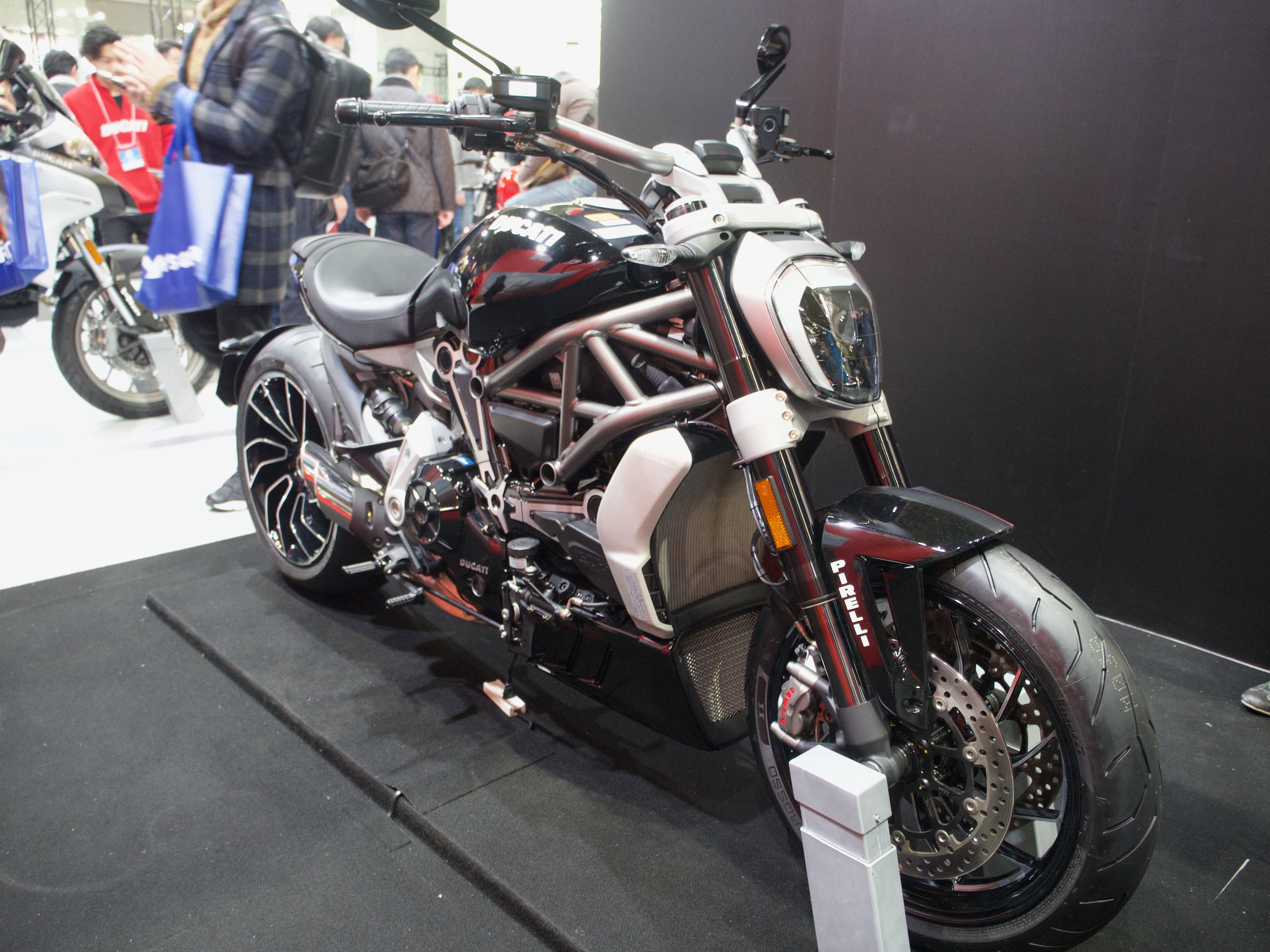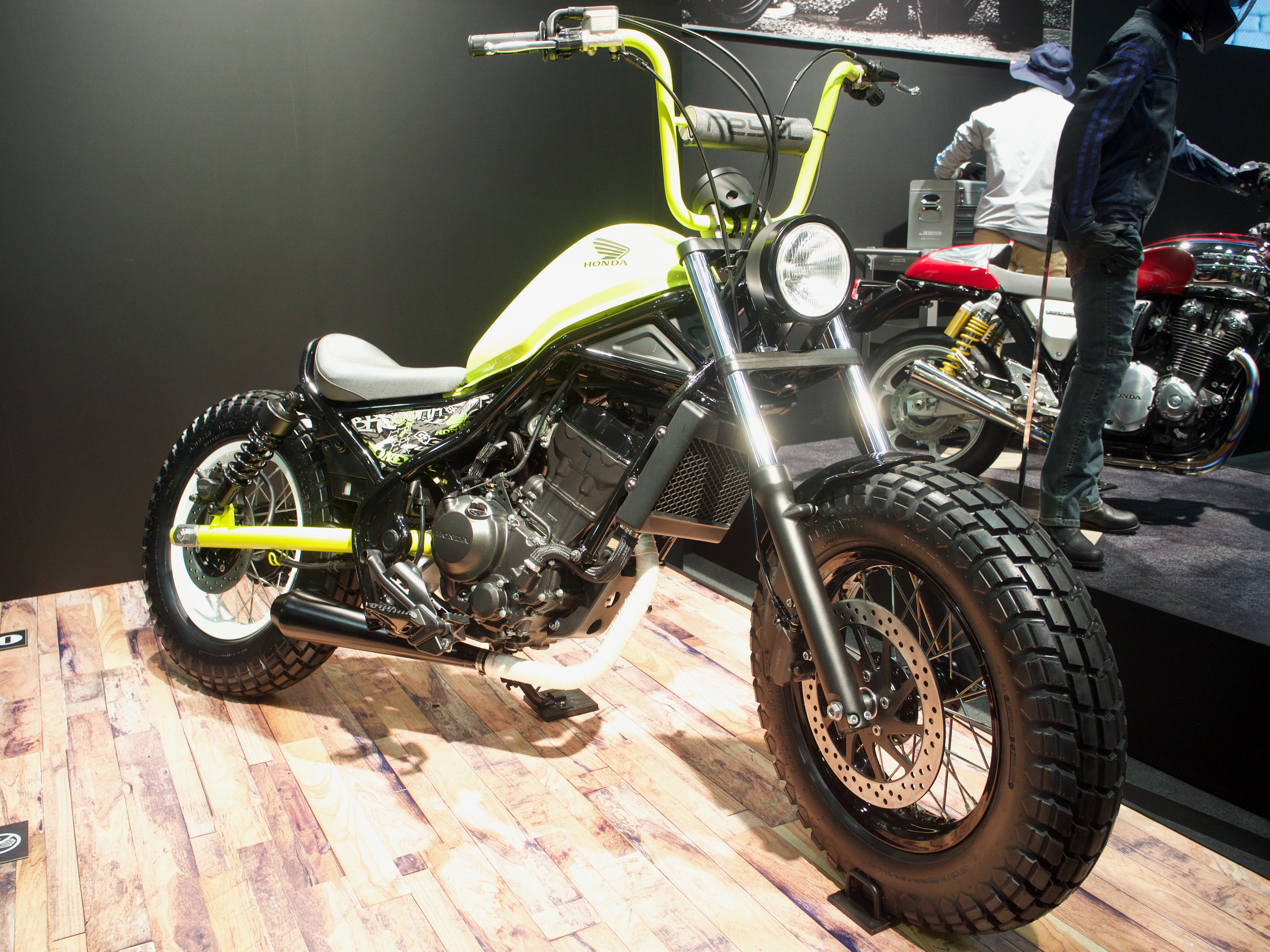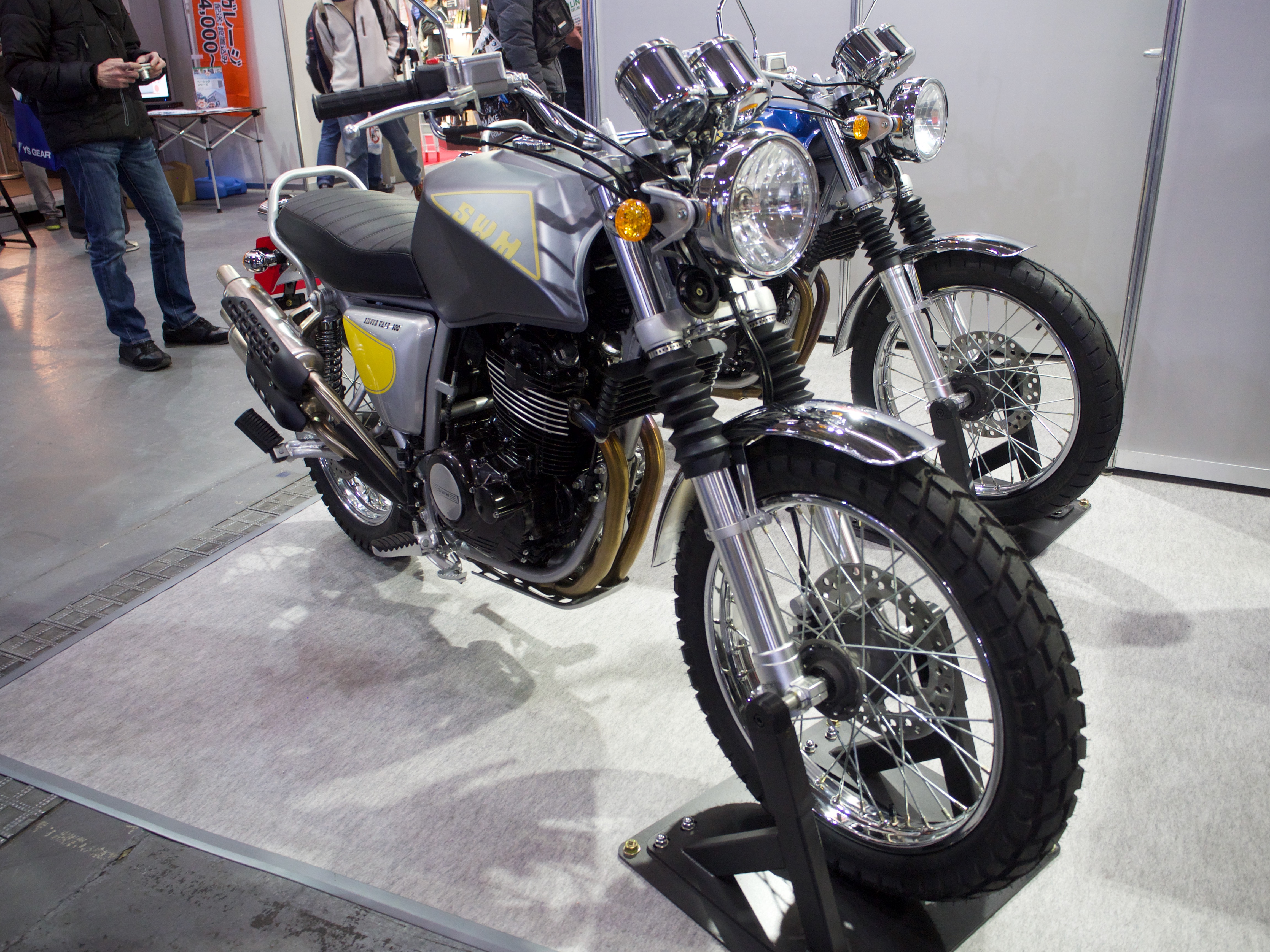 そのまわりにも比較的大きなグッズメーカーや南海部品のブース。そして、それらを囲むようにバイクメーカーのブースがずらっと並んでいる。結構な人混みなので、うまく写真は撮れていないが、各社の(個人的に)いけてるバイクを以下に紹介。