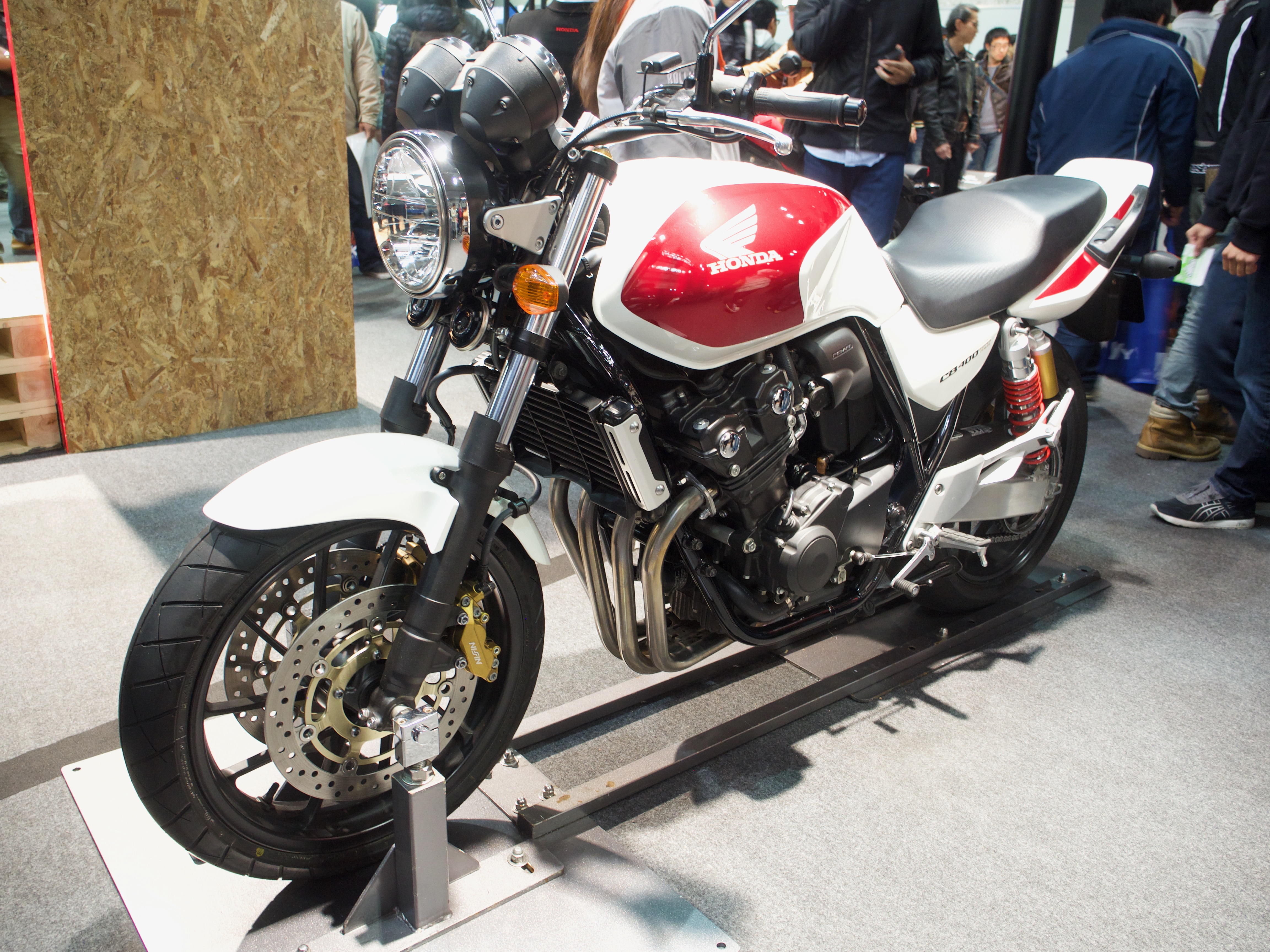 まずはHonda。今更と言われるかもしれないが、CB400 SUPER FOUR。定番の赤白。十数年前に乗っていたが、まだまだ現役で、熟成を重ねている。
