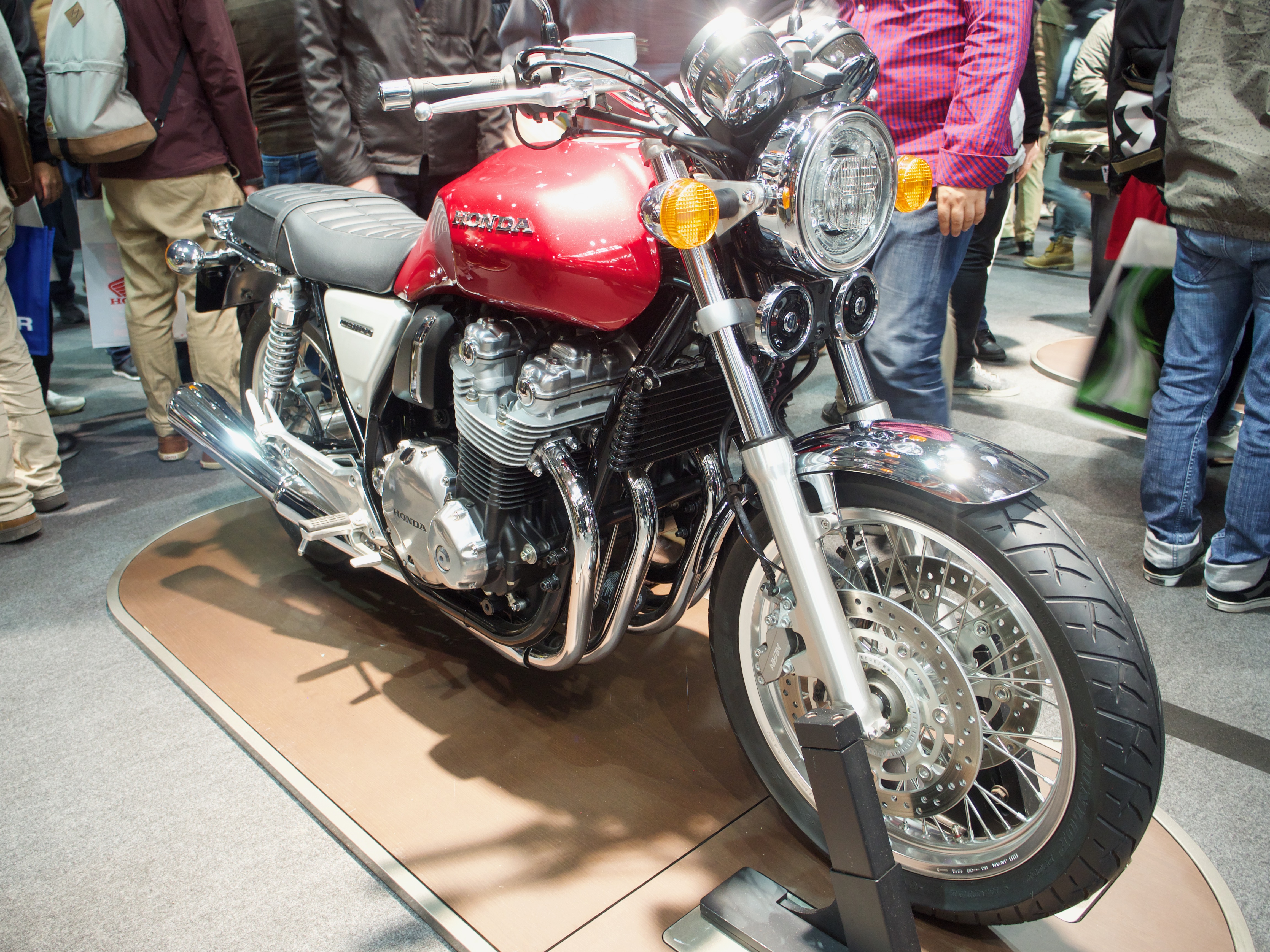 その近くには1月にモデルチェンジしたCB1100 EXと追加されたCB1100 RS。どちらも空冷直列4気筒。エンジンは美しいが、タンクの形状はあまり好きではない。