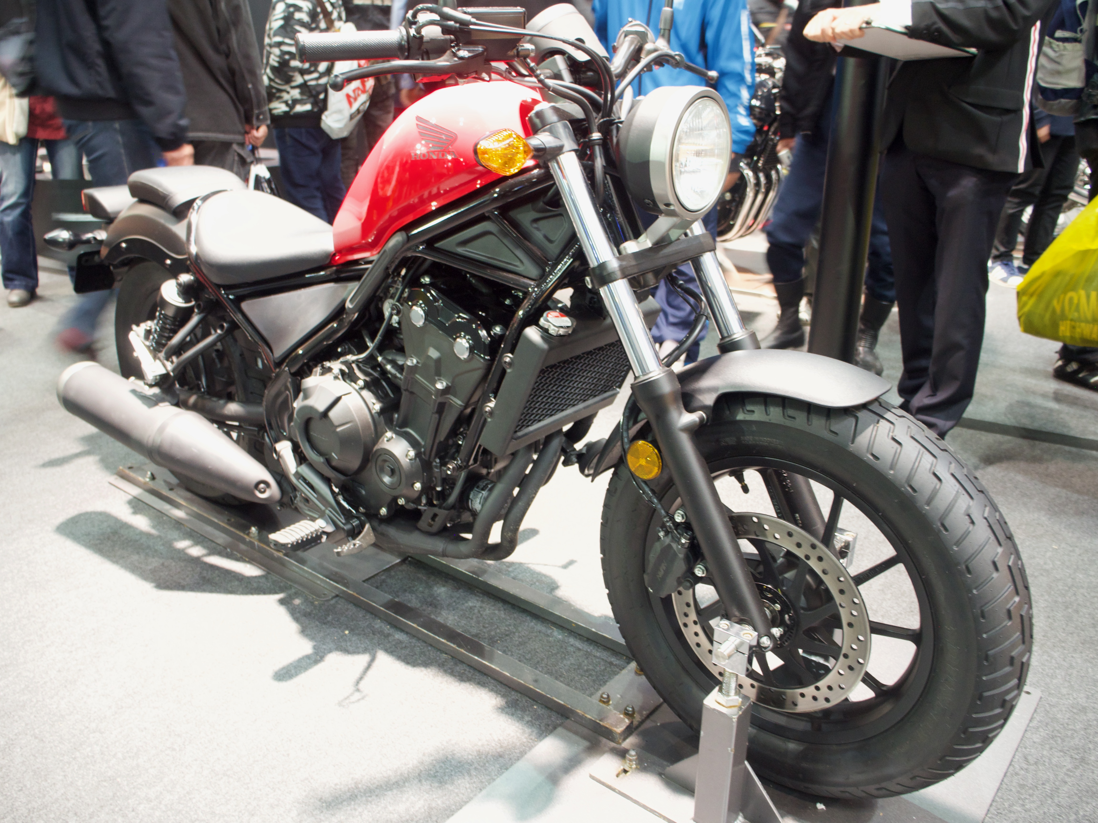 そして、4月に発売されると噂されているRebel 500と250。ただし、250はカスタム車。500は水冷二気筒、250は水冷単気筒で、車体はおそらく同じ。足つきが良い、クルーザーモデルで、おそろしくかっこいい!