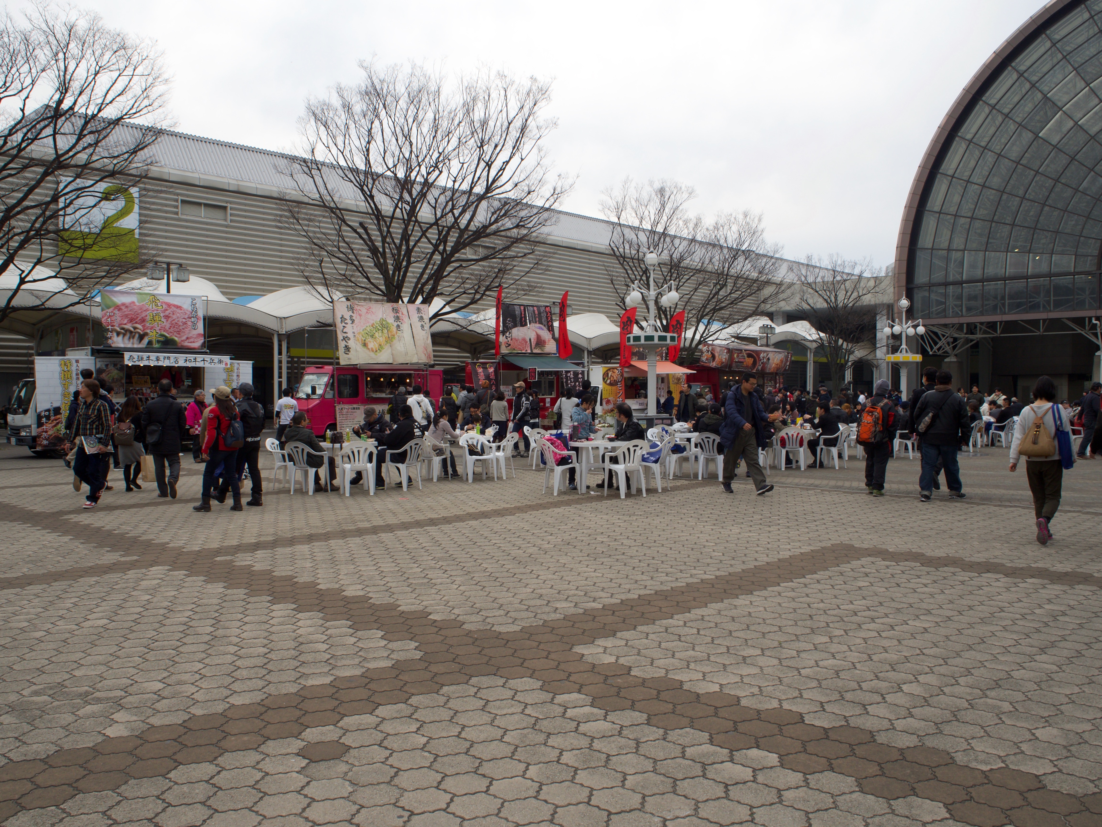 ところで、昼食。インテックス大阪の近くにはATCというビルがあり、いろんなレストランが入っている。が、今回はそこに行かず、会場外に並んでいるB級グルメの屋台の中から、ホルモン丼を注文。量が少なかったが、味はgood。