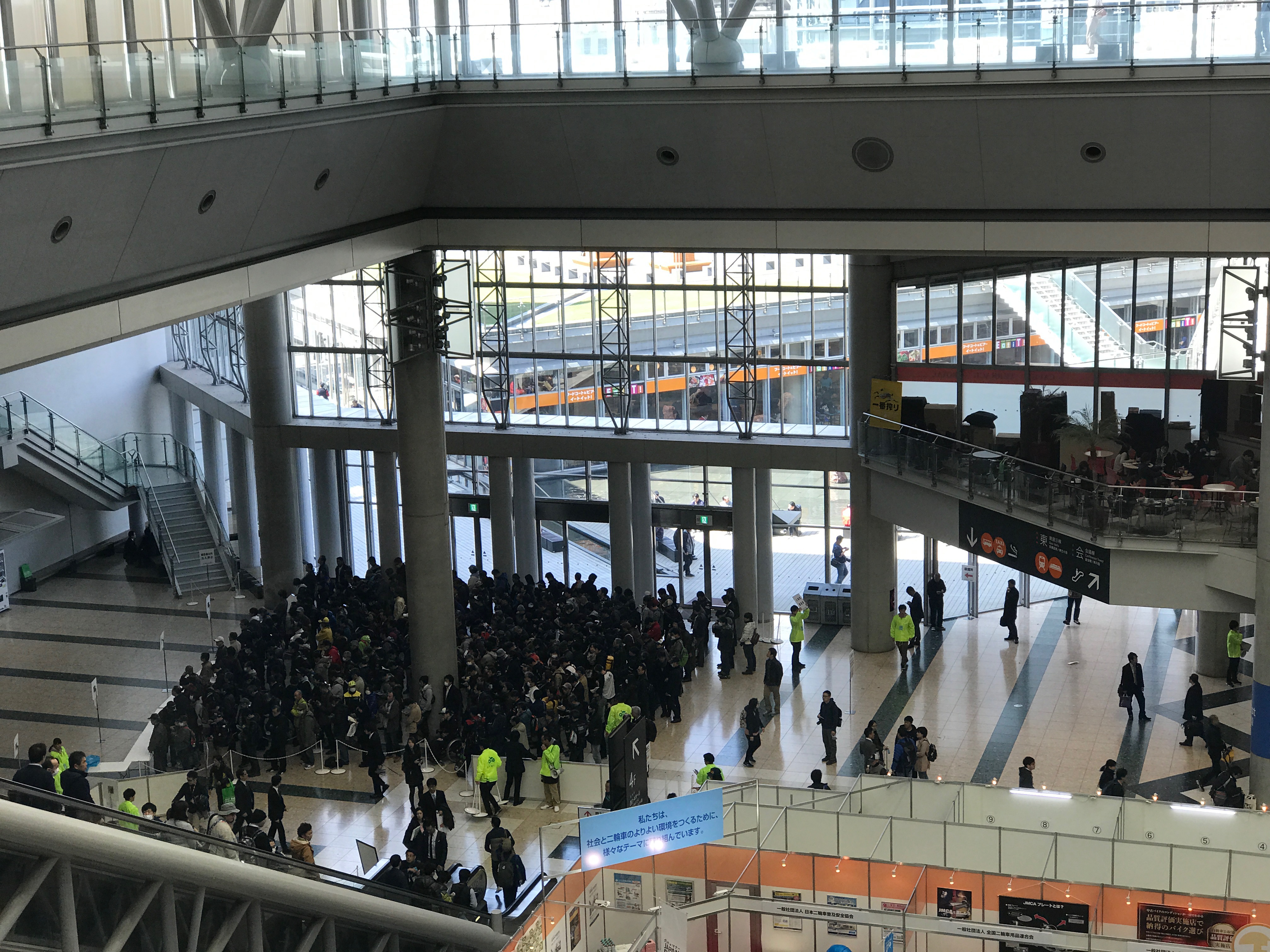 13時には1Fと4Fの入場口は長蛇の列。4Fの方がまだマシだったので、10分くらい並んでやっと入場。黄緑色のジャケットを着たスタッフがあ「一般人は6列に並んでくださーい」とずっと声を張り上げていた。「一般人」なのでおとなしく並んだ。
