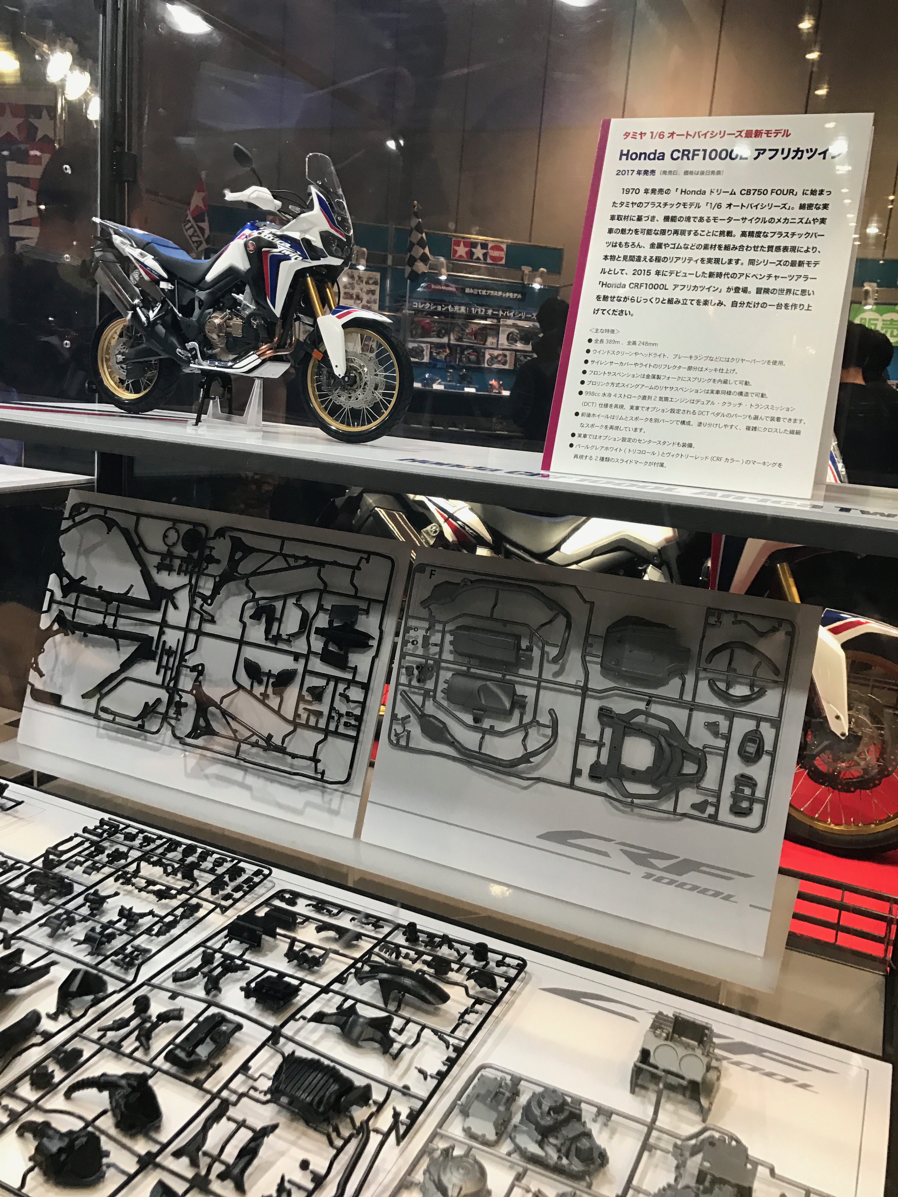 最後に、有名なTAMIYA。もちろんバイク用品ではなく、プラモデルを展示。精巧さは一品だ。
