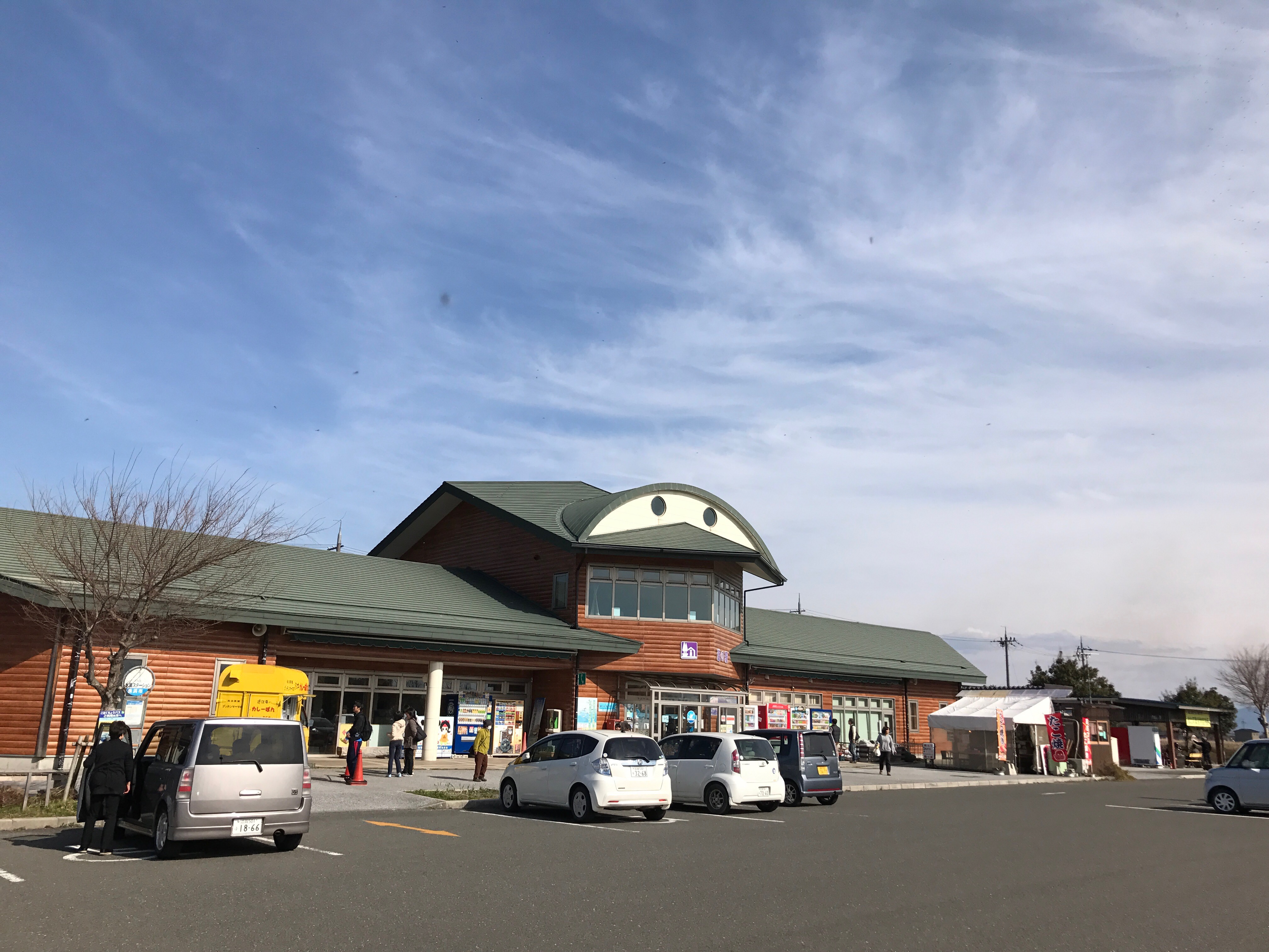 さすがに腹が減ったので、道の駅 湖北みずどりステーションで遅い昼食。ちょうど15時。下の写真の左にみえる黄色の屋台カーでカレーパンを買う。からっと揚がったパンの中には濃厚なカレーがたっぷり入っている。店内では小鮎とワカサギのフライを売っていて試食させて貰った。めっちゃうまいので、酒の肴に購入。