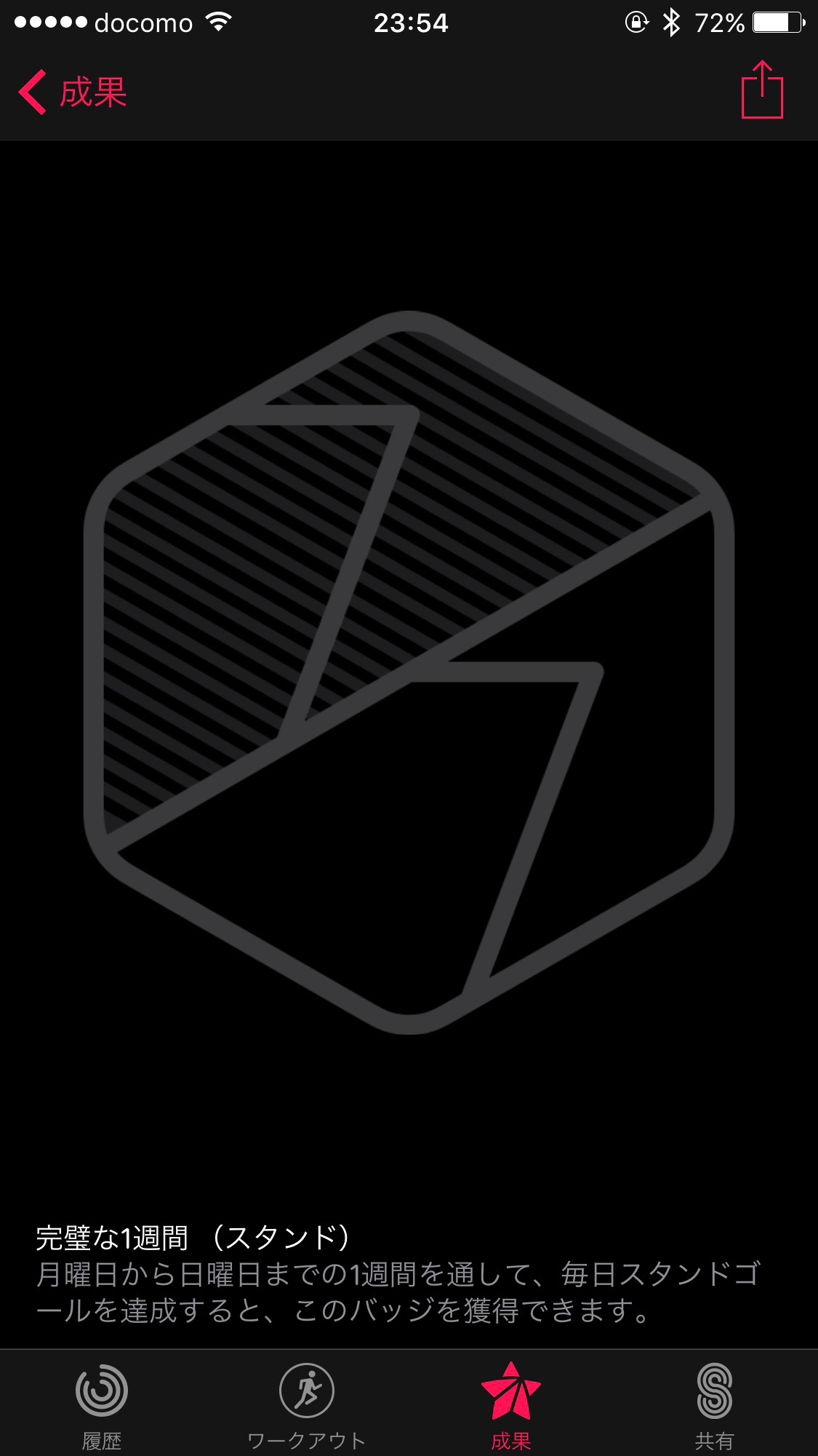 「完璧な1週間(スタンド)」。月曜日から日曜日までの毎日、スタンドのゴール(12時間)を達成すると貰える。