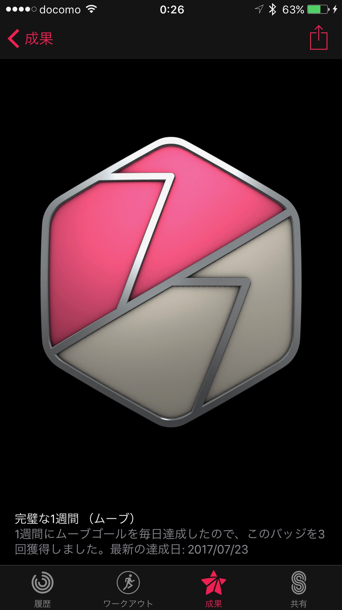 「完璧な1週間(ムーブ)」は3回目、「完璧な1週間(エクササイズ)」は2回目の獲得になる。完璧な1週間シリーズには他にスタンドもあり、いずれも白色と特徴的なカラーの組み合わせになっている。ムーブは赤色系、エクササイズは緑色系、スタンドは青色系。そう、アクティビティアプリの配色に沿っている。