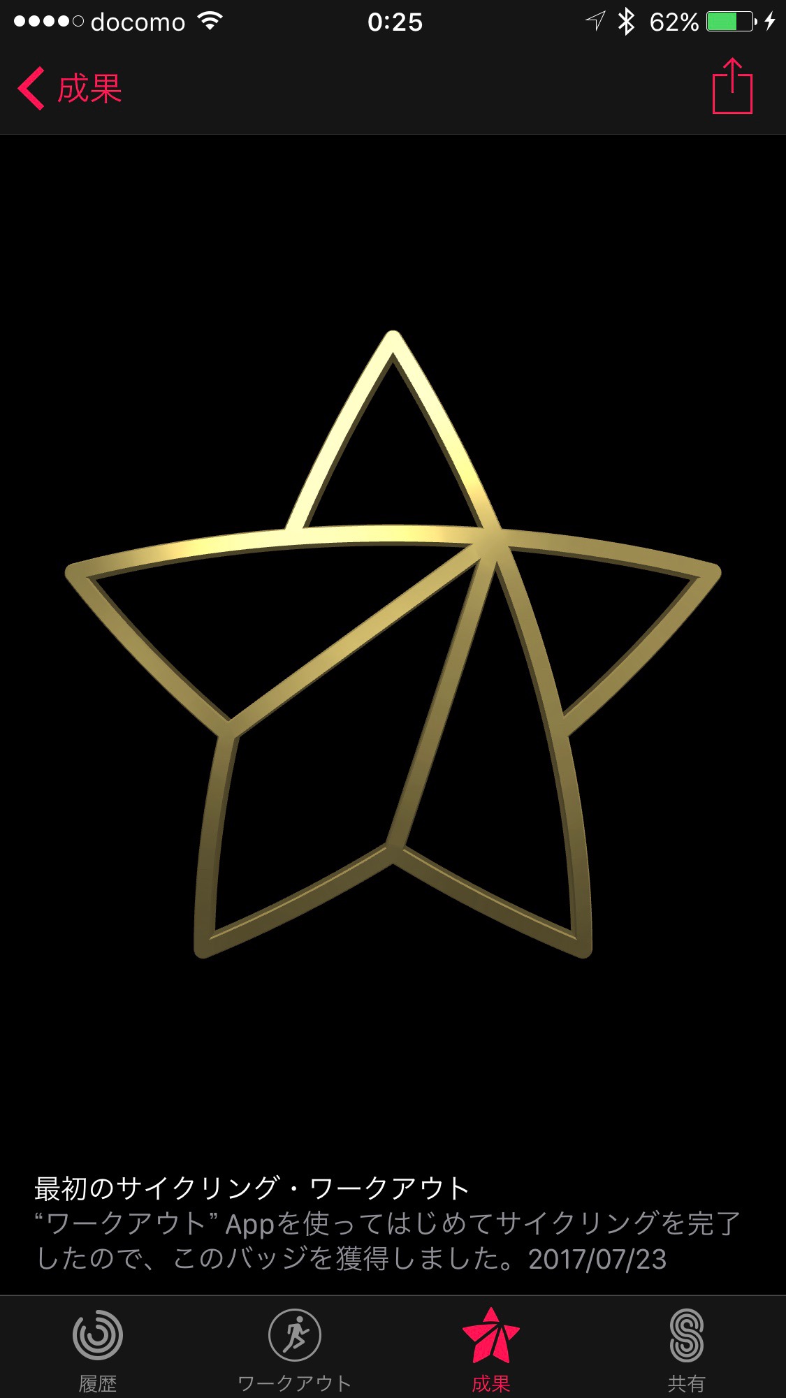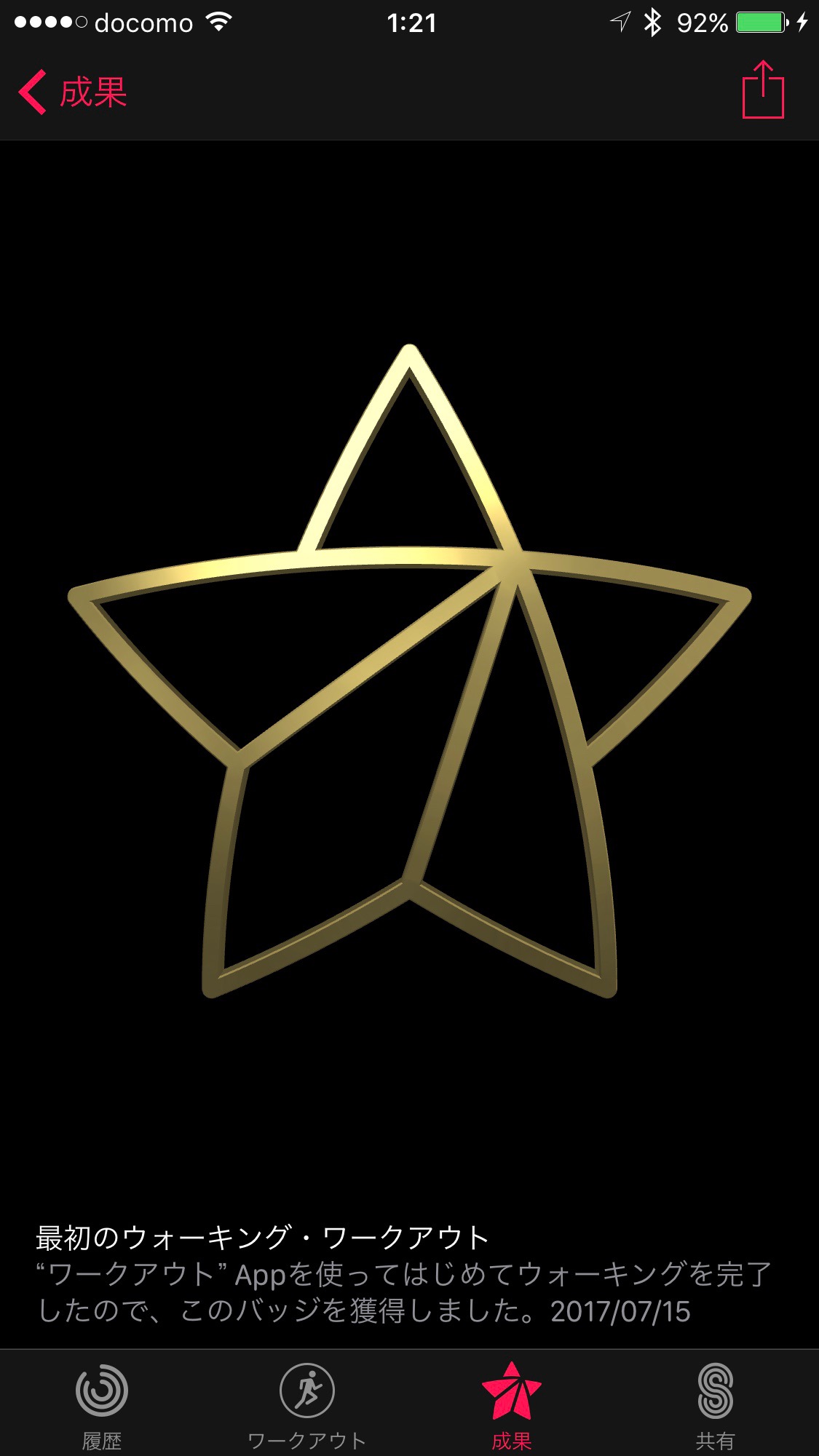 残念なことに、他のワークアウトと同じバッジだった。下の写真は「国立公園チャレンジ」をしたときのウォーキングでもらったバッジ。