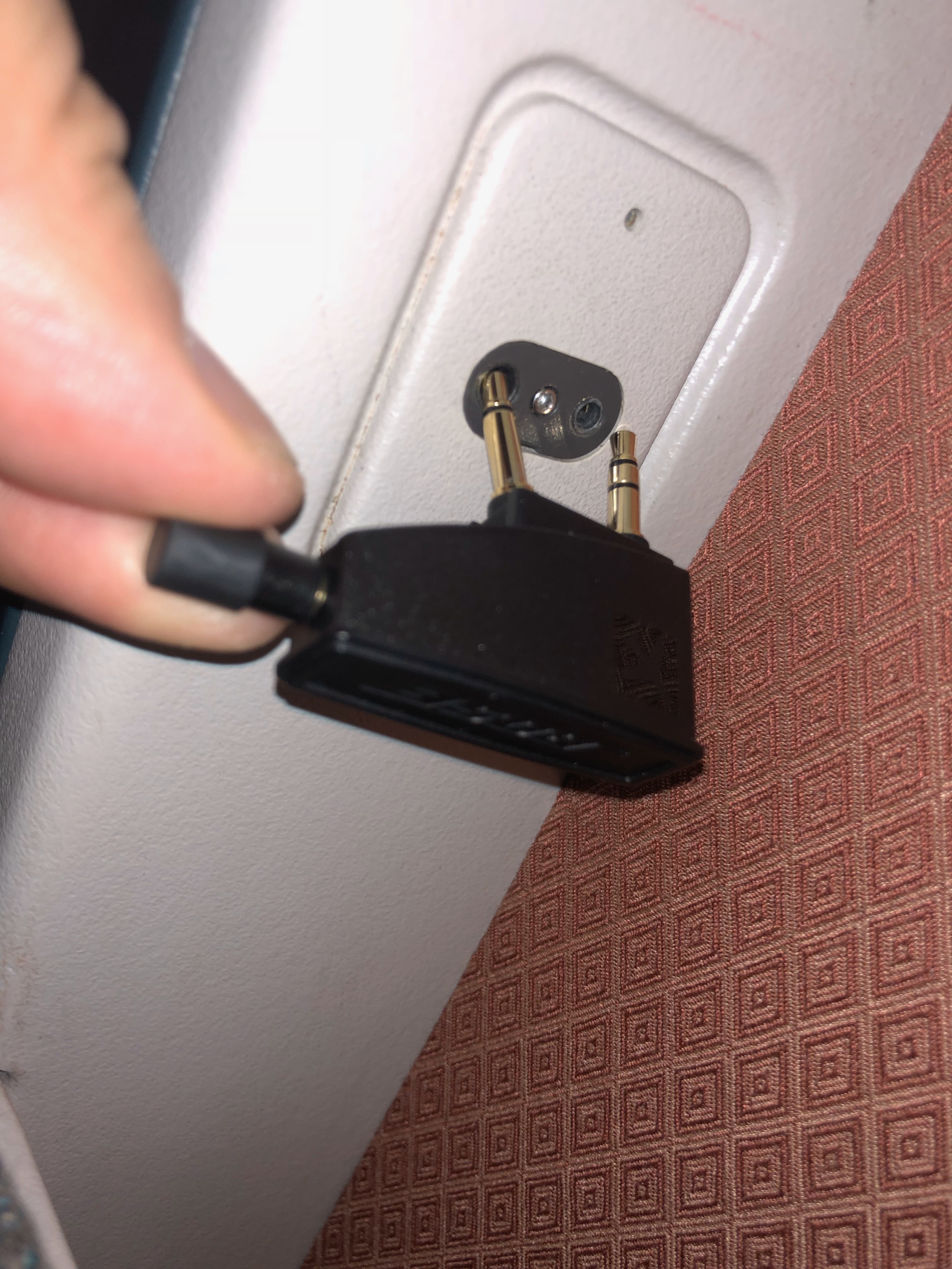 困ったことが一つ。BOSEのQuietComfort 25のプラグがシートのヘッドホンソケットに入らなかった。BOSEには航空機変換プラグが付いているが、形状が合わない・・・