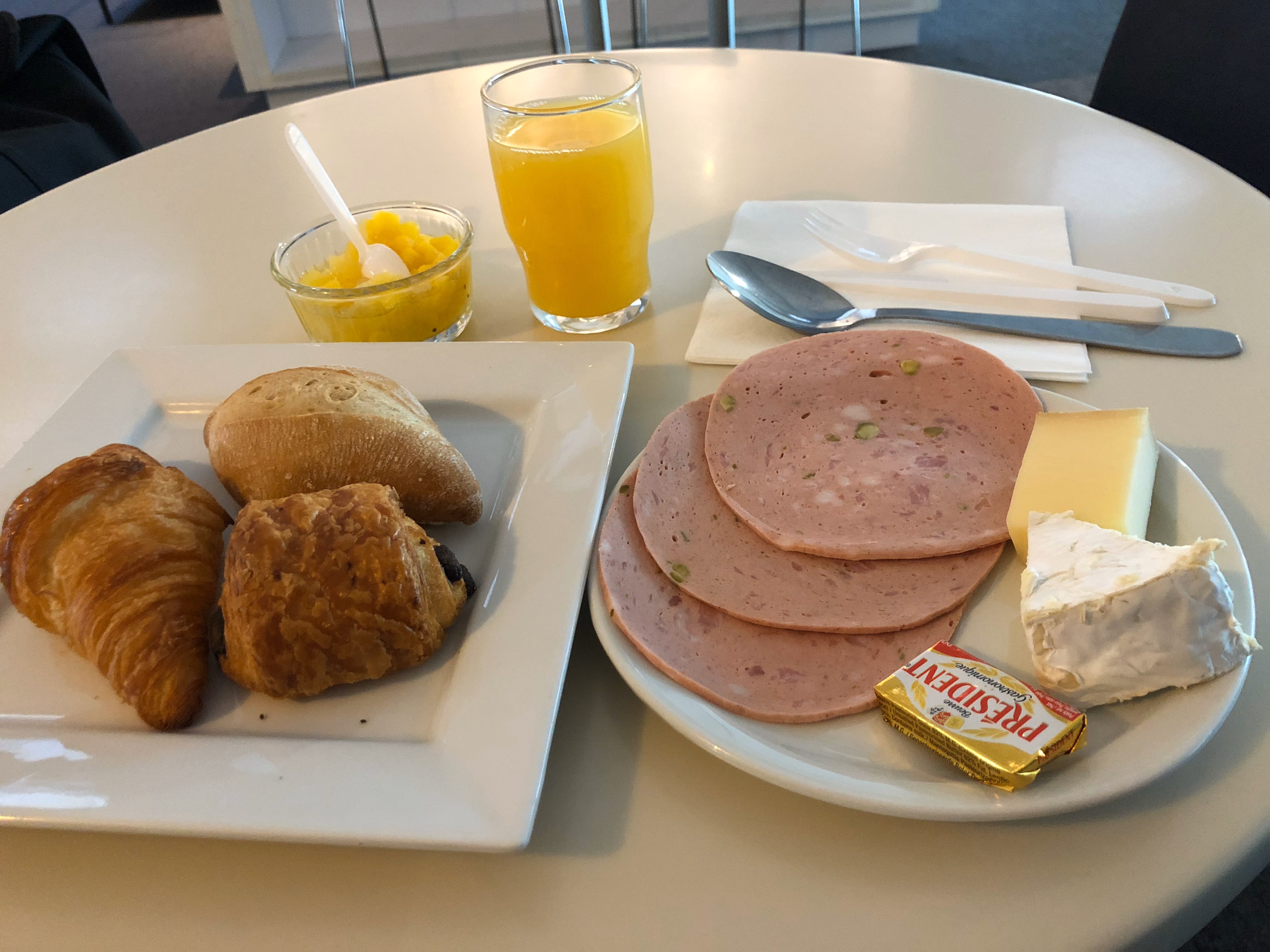 シャルル・ド・ゴール空港へ到着。マルタ便まで約3時間あるのでラウンジへ。やっぱり、また朝食をいただく。