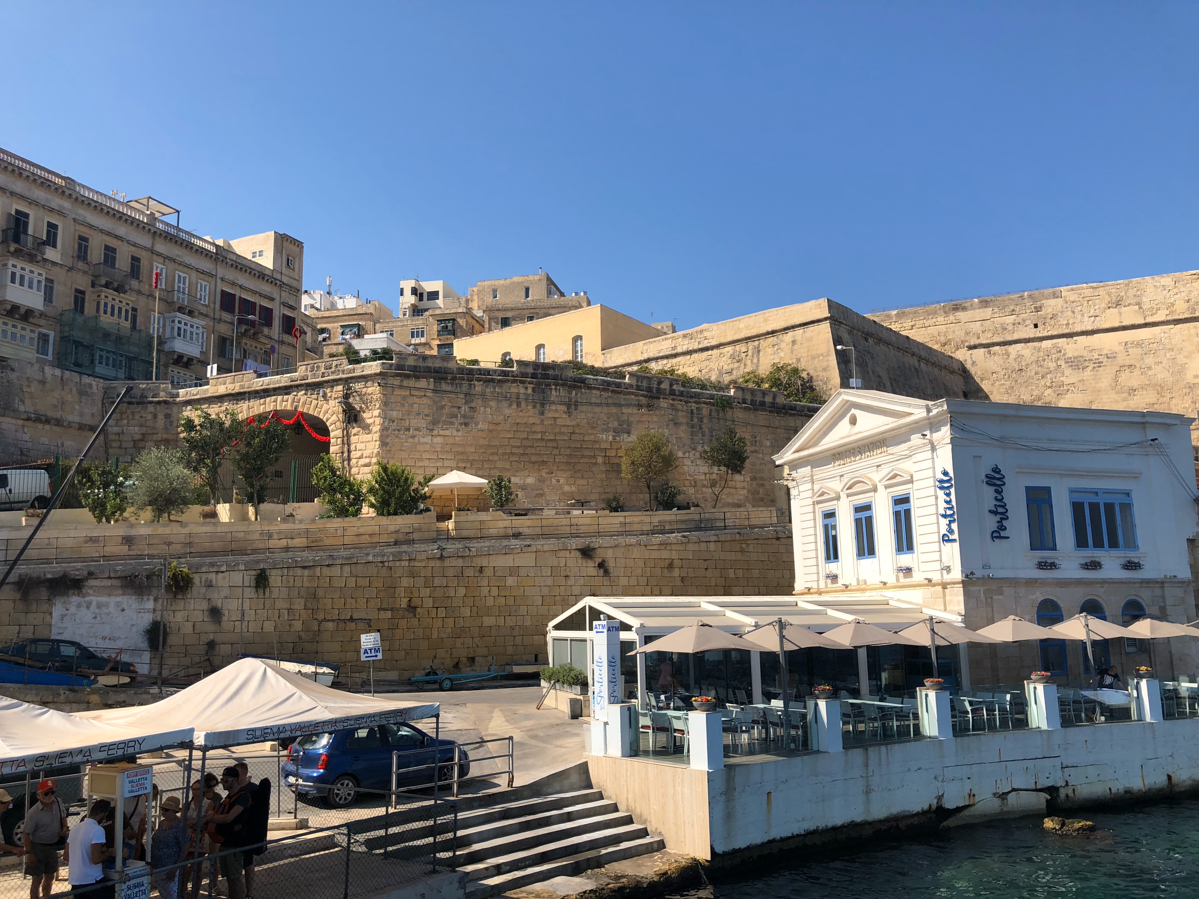 さて、朝食が済んだので、いざバレッタへ。バレッタはマルタ共和国の首都で、街全体が世界遺産に登録されている。スリーマから行くのは簡単。入江を挟んだ向かい側なので、ボートで15分。陸路でも行けるが、入り江をぐるっと回って行くのでだいぶ時間がかかる。