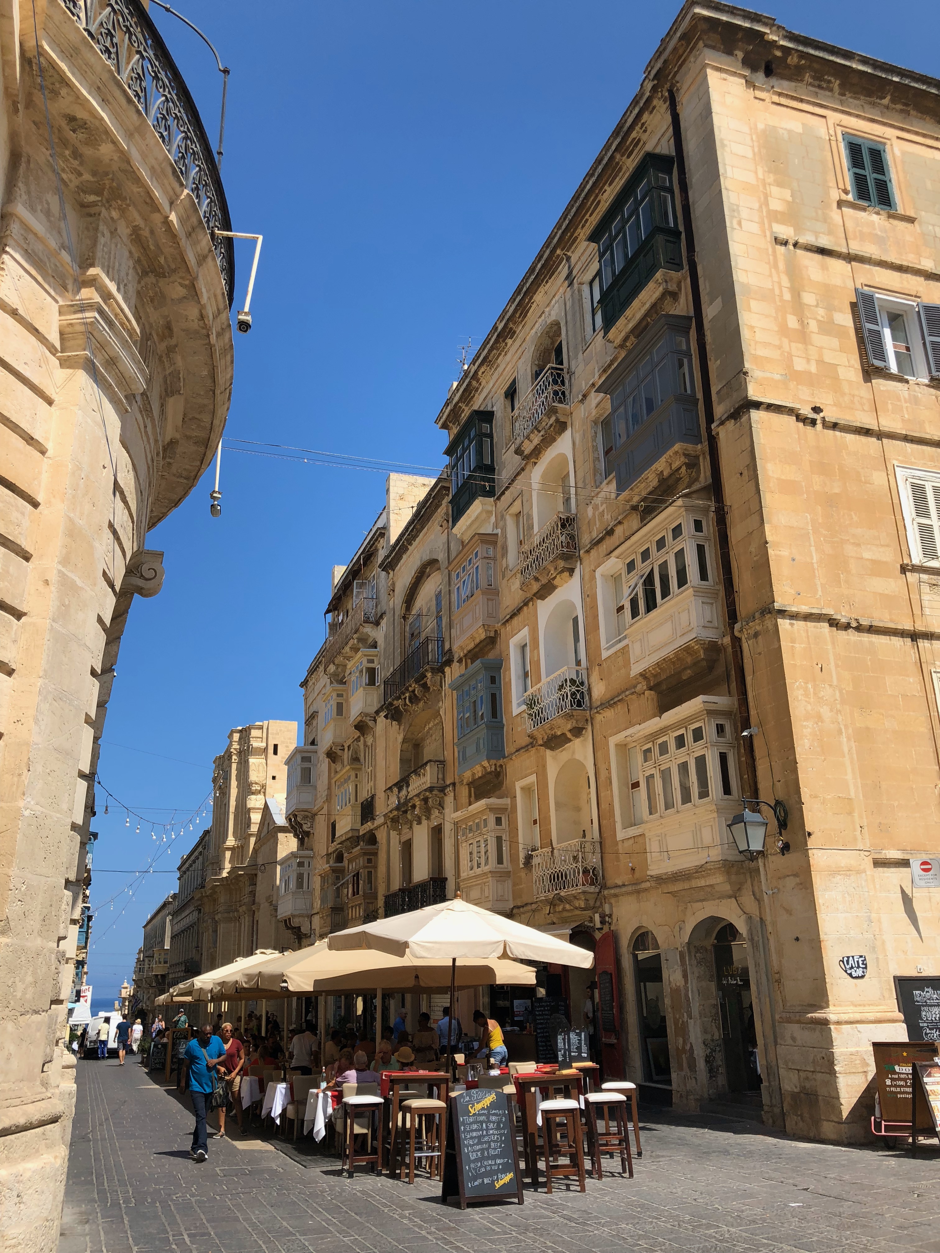 バレッタ観光の中心となるリパブリック通り。この周辺に聖ヨハネ大聖堂や騎士団長の宮殿、各種の博物館、そして美味しいレストランが集中している。