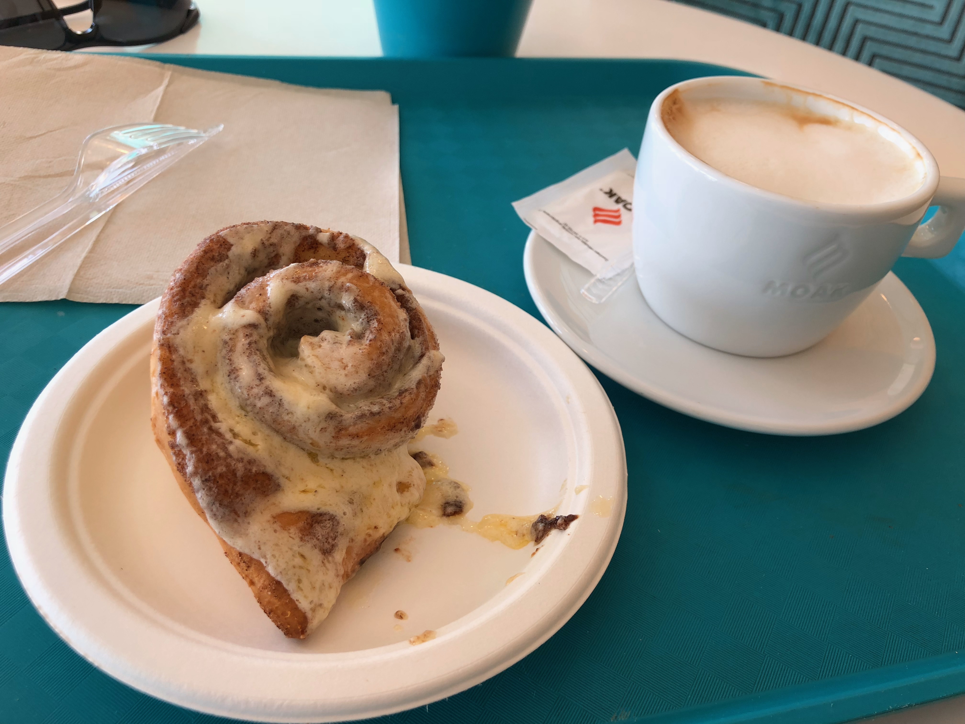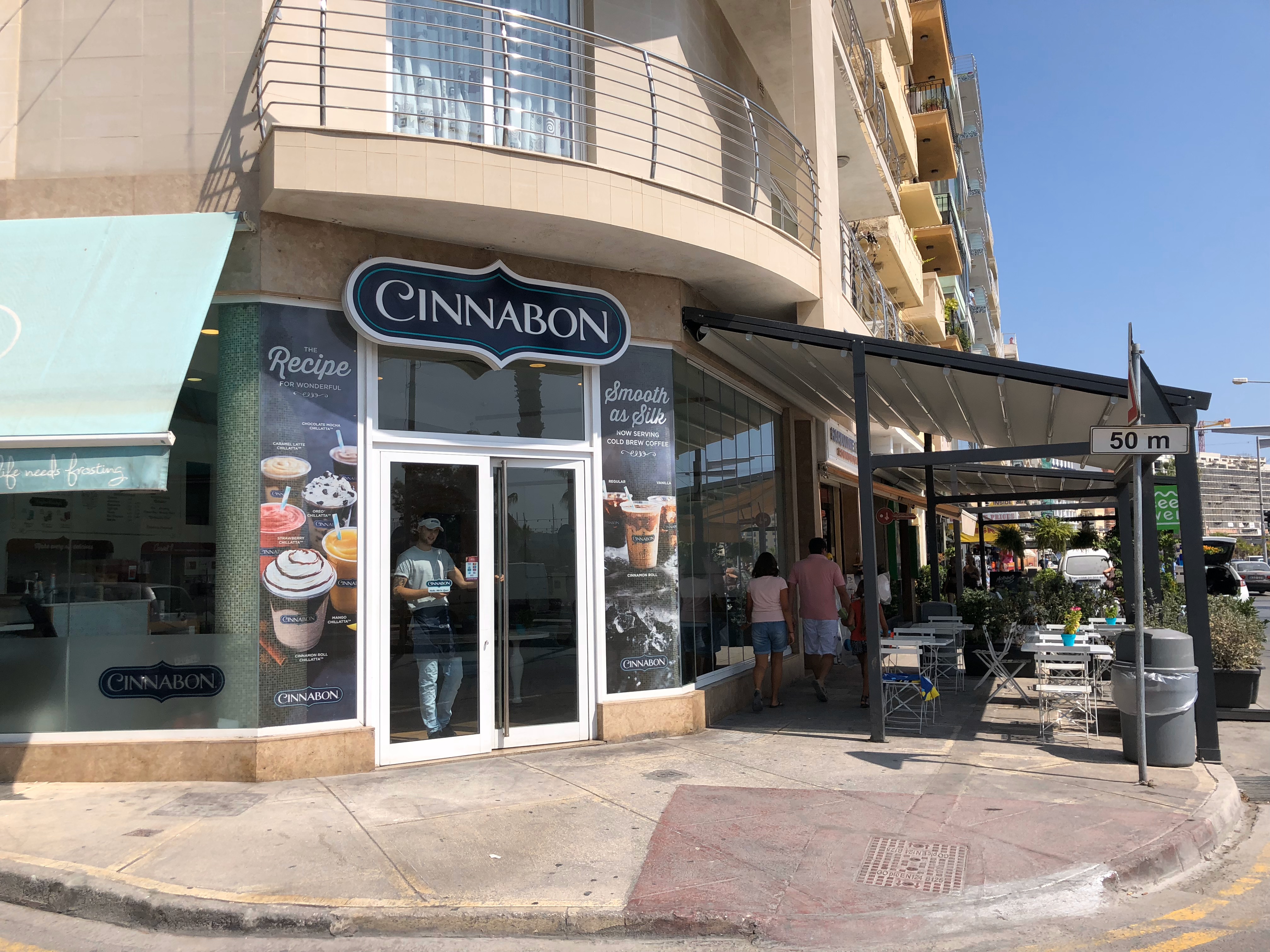 疲れが出てきたので、ゆっくり起きて、甘いものを。ということで、(米国では)定番のCINNABON(マルタにあるとは思わなかったけど)で、定番のクラシックとコーヒー。