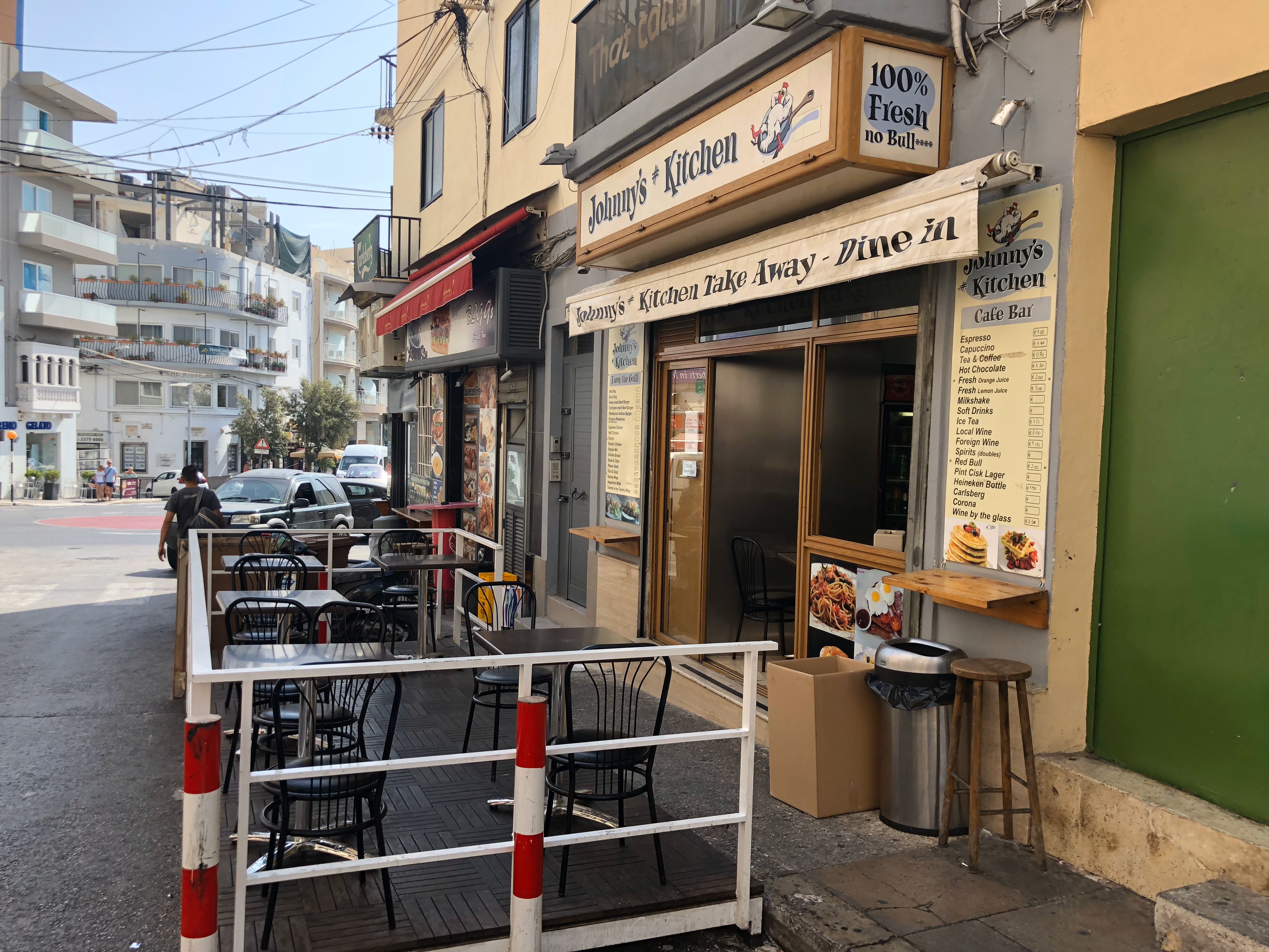マルタ、最終日。お土産を買うためにセントジュリアン(San Giljan)の街をぶらぶら。セントジュリアンはスリーマの北西にある大きな町。ランチは定食屋さんでビールとタコス。
